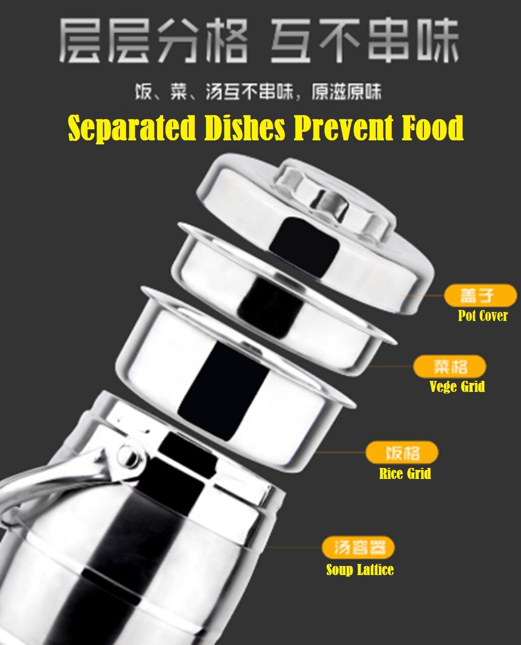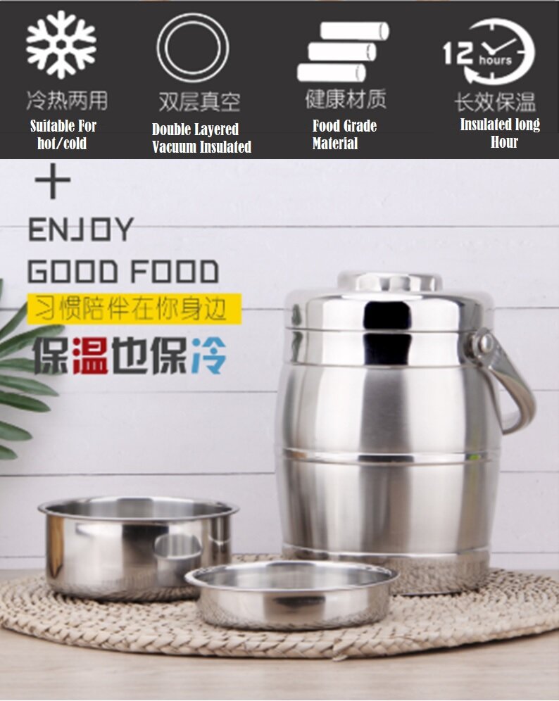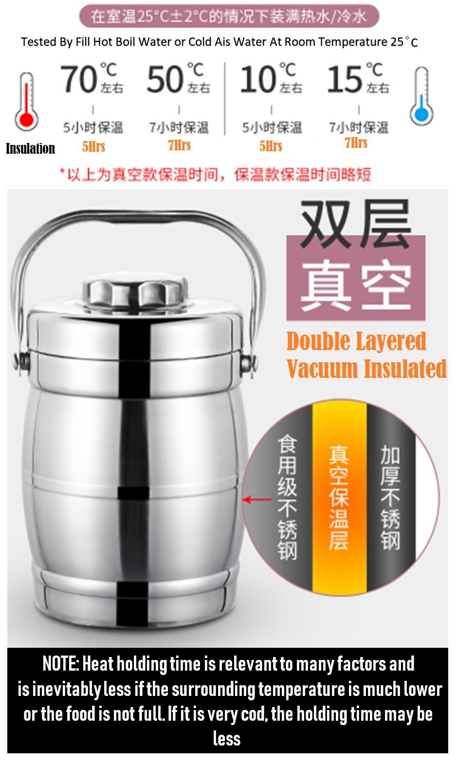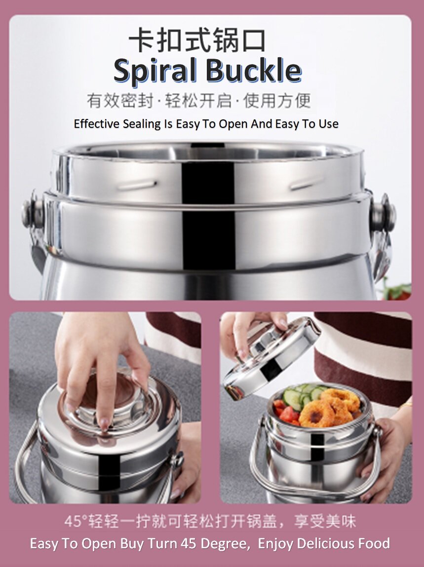 [2.2L] 3 Layer Stainless Steel Thermal Insulated Lunch Box and Food Storage Box Bekas Makanan 保温饭盒保温提壶