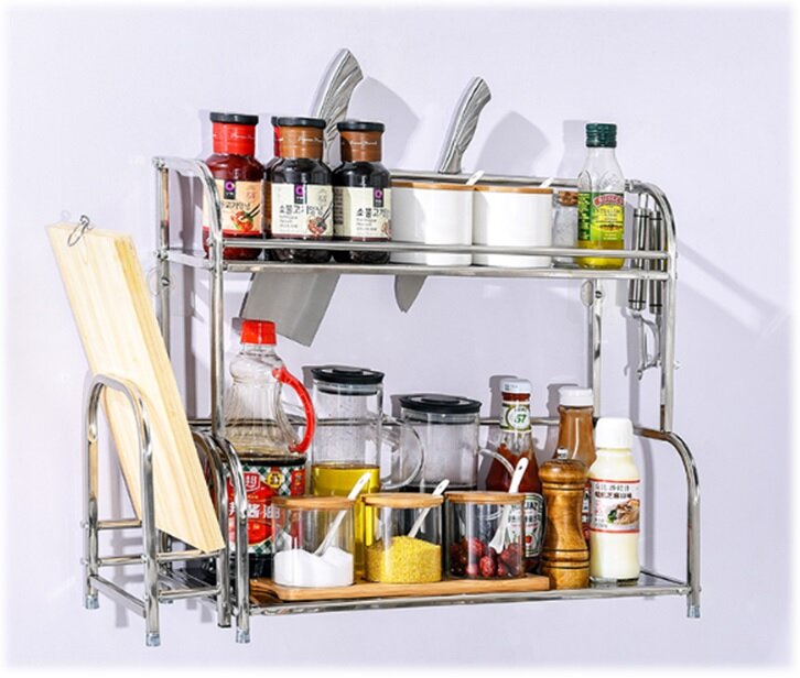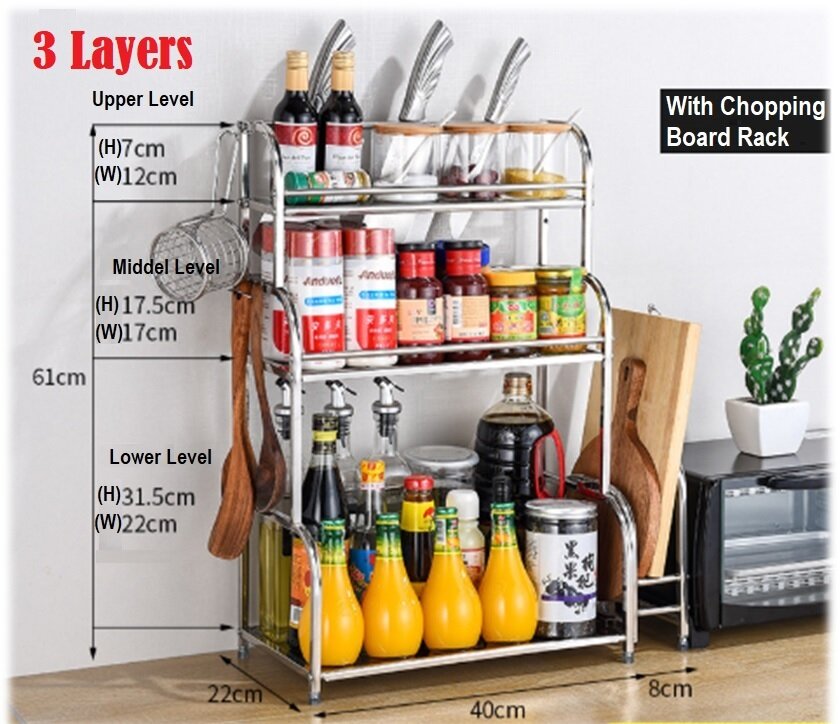 MR-011 [2-3 Layers] Stainless Steel Seasoning Rack Kitchen Spice Bottle Rack Storage Shelf Knife and Chopping Board Rack