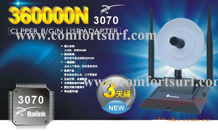 High-Power 1500mW Clipper B/G/N USB WiFi Adapter.
