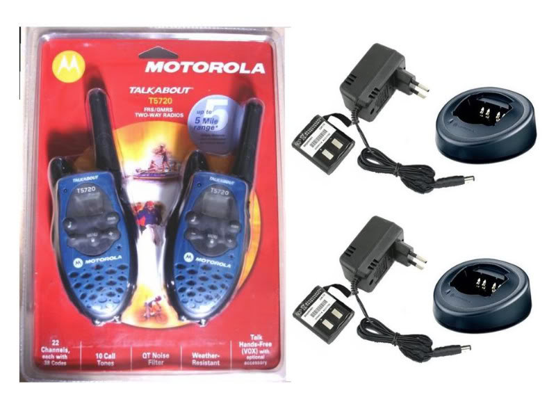 Motorola Talkabout T5720 Two Ways Walkie Talkie + Re-Chargeable Battery + Charger (2 sets)