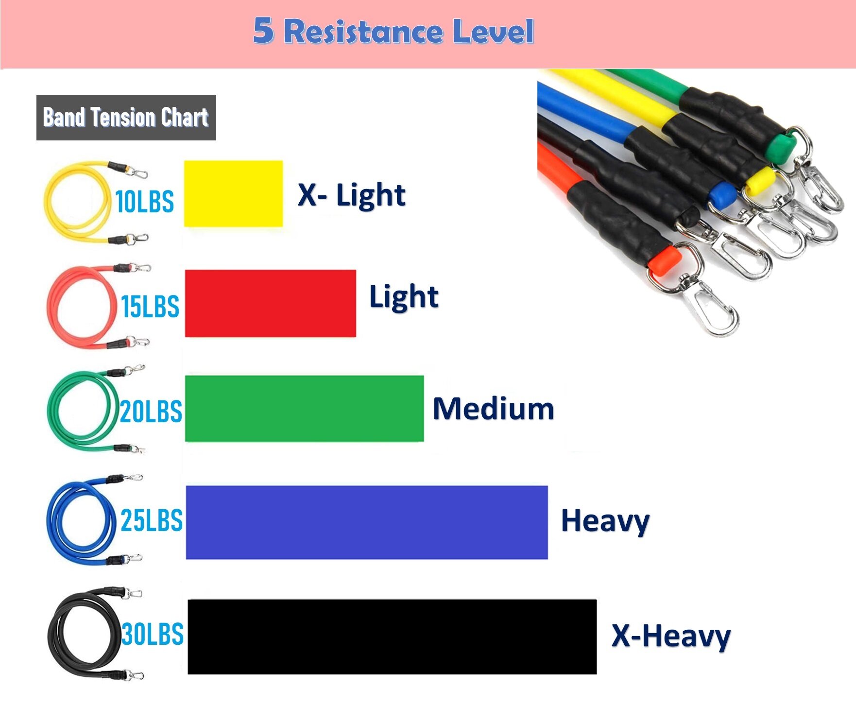 Different colors of tension rope will have different pounds :Yellow -