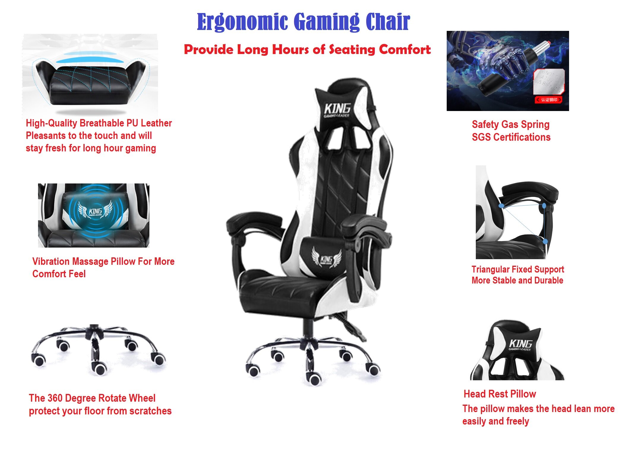 ✅High-quality leather and wheels: The curves and shapes of the design allow our leather chair to perfectly position your body, making you feel comfortable and fully supported, no more pain when you sit on it for hours.