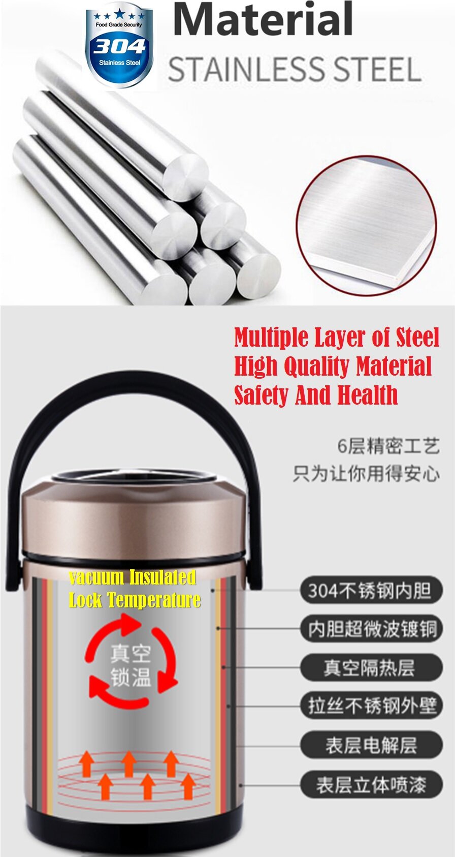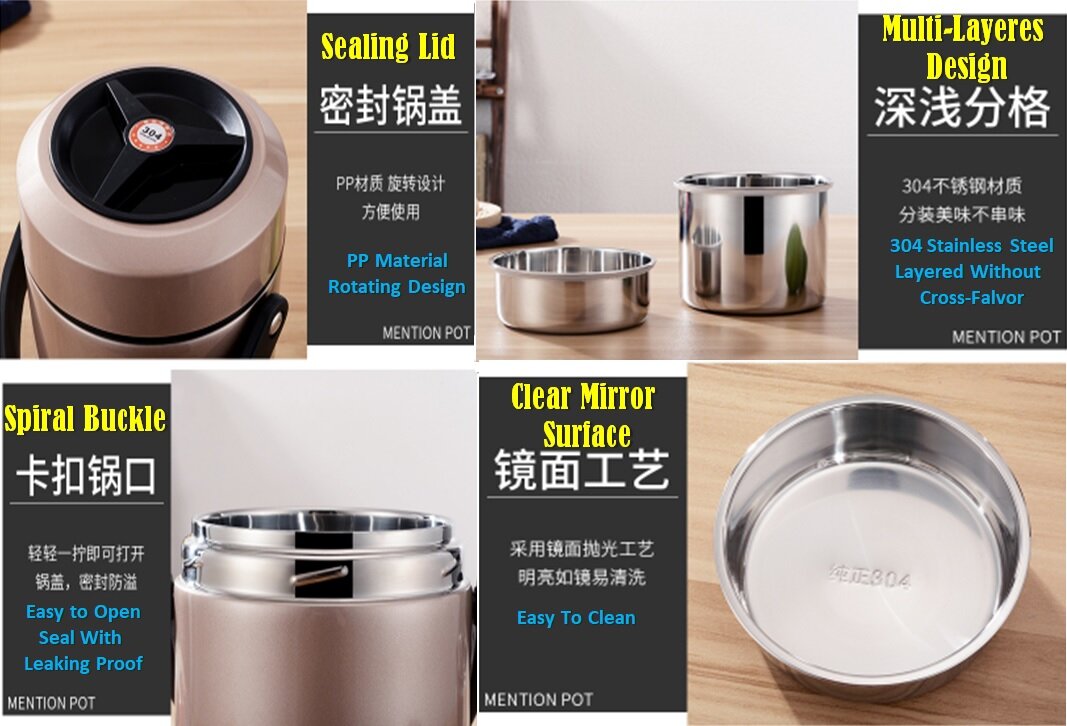 Stainless Steel Thermal Insulated Lunch Box is your best choice for carring food to work everyday.Great for kids, adults, workplace, college students, hiking , road trips, picnics and sports events. Stylish, fun, practical and great for sharing. Stainless Steel Containers make Food Taste Great.