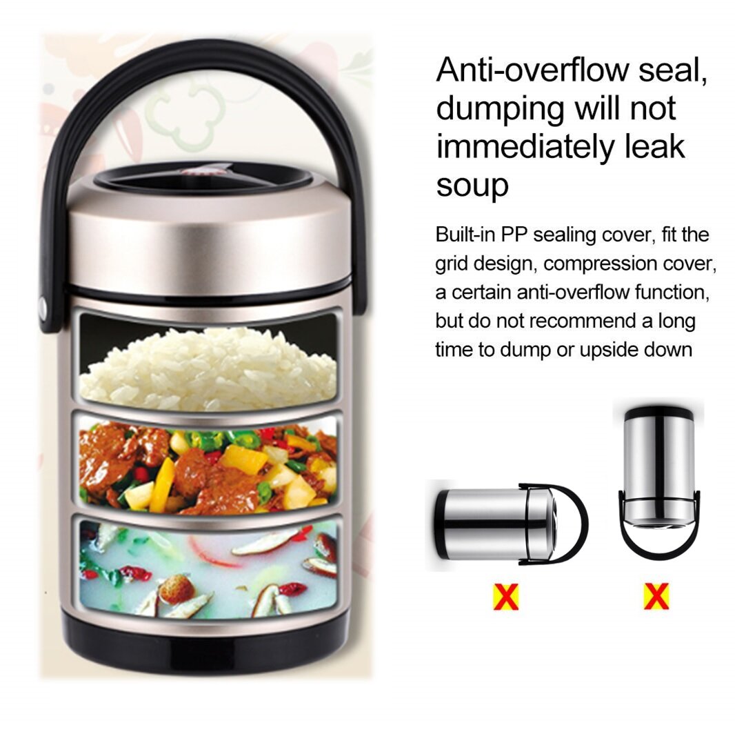 ✅ The Double Layered Vacuum Design : It makes the food jar possible to keep food warm or cold up to 8-12 hours, meets the demands of daily use. Three tiers design for storing staple food, cuisines and soup separately to prevent odor. Vacuum bottom design enhances thermal insulation performance.