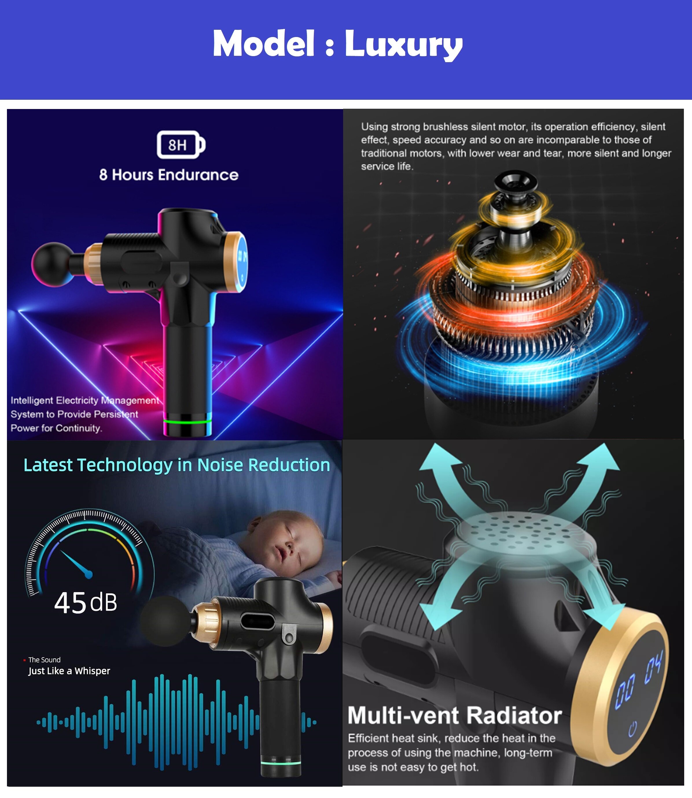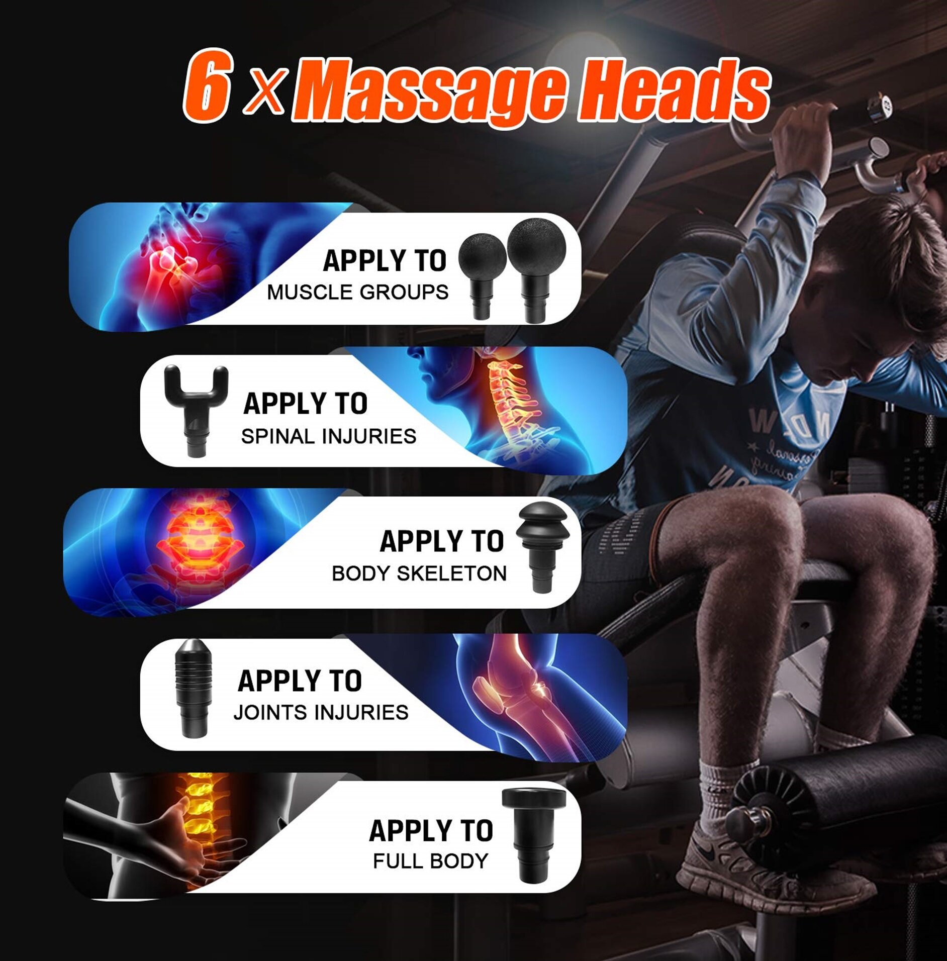 MASSAGE HEAD: Our massage guns are available in 6 types of massage