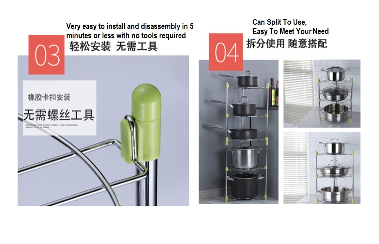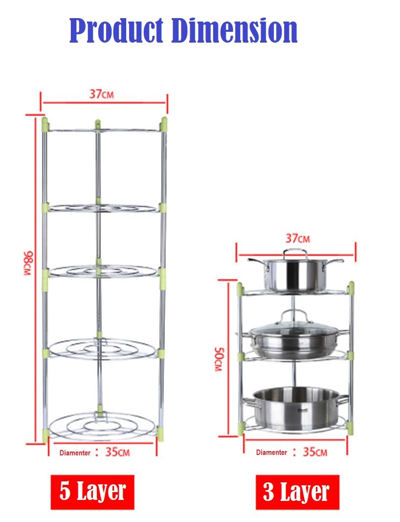 MR-005 [5/3] Layer Home Kitchen Pans Pots Storage Rack Durable Heavy Duty Electroplate Chromium Iron Stainless Steel