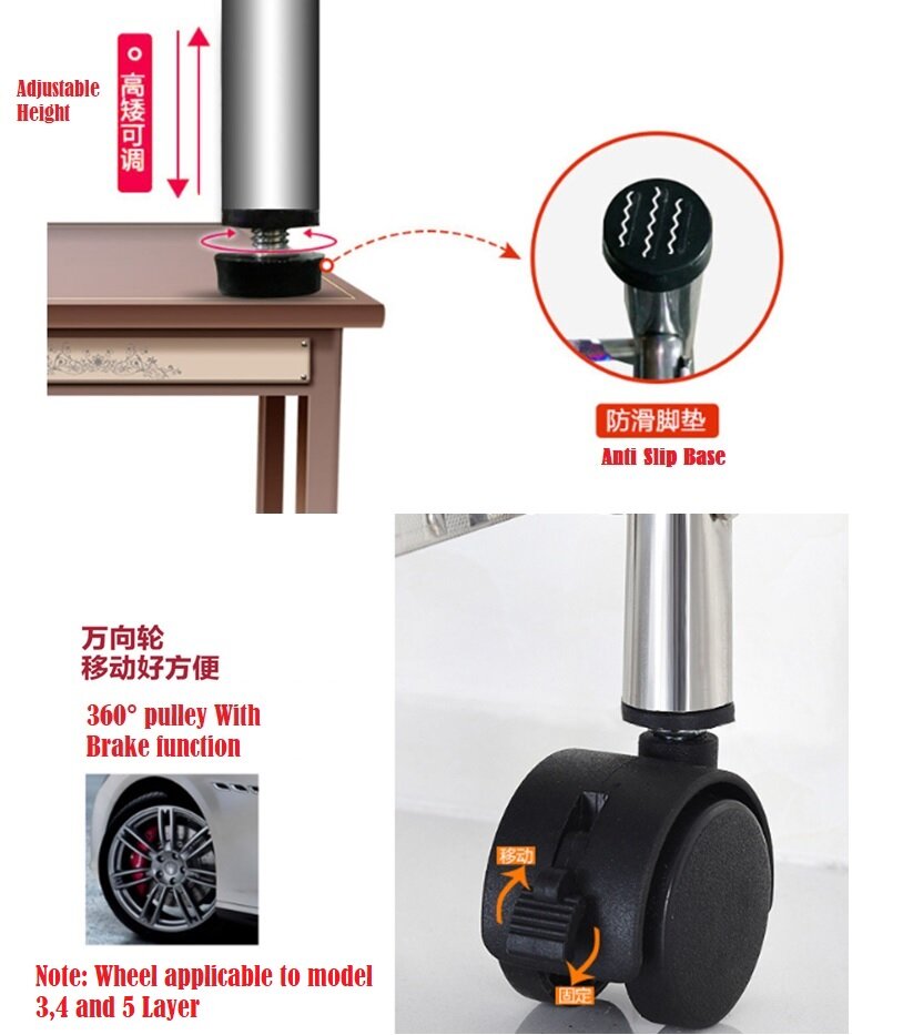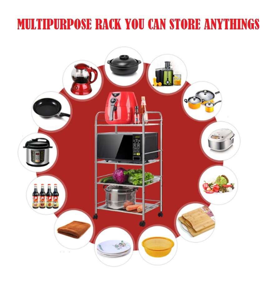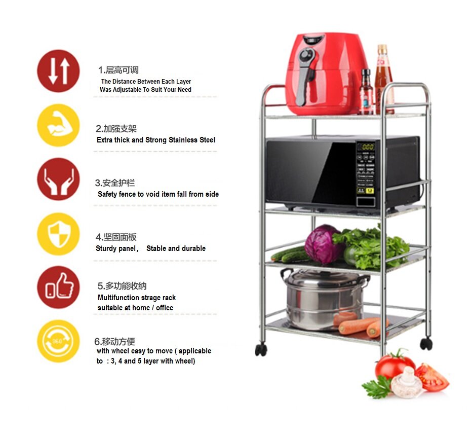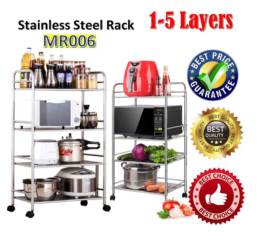 MR-006 (1-5 Layers) Stainless Steel Kitchen Storage Shelf ,Storage Rack, Kitchen With Wheels Microwave Oven Rack