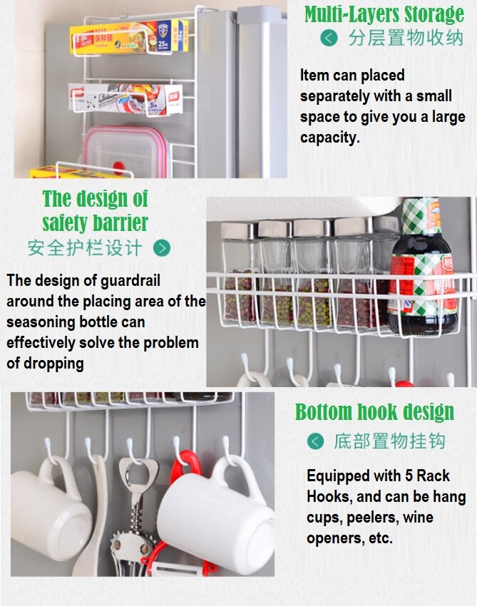 MR-009 Sidewall Hanger Kitchen Rack Kitchen Fridge Sidewall Shelf Organizer Storage Rack Multi-layer Holder