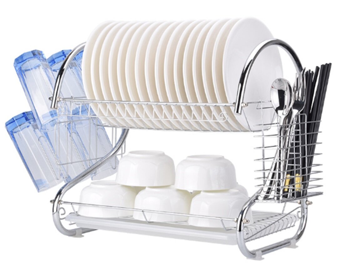 MR010 [2 Layers] Stainless Steels Drain Dishes Kitchen Dapur Storage Rack Rak Pinggan Mangkuk Kichen Organizer