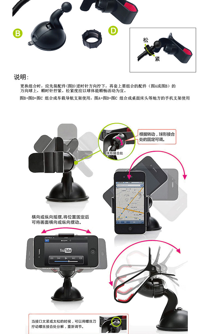 Flexible Neck, Adjustable Holder area, Suitable for Mobile Phones/PDA/MP3/MP4/GPS