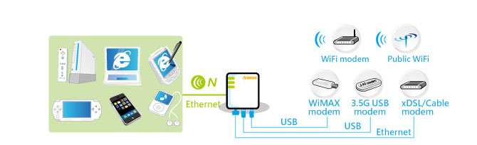 3G/4G, or even WiMAX, you can share internet connections effortlessly