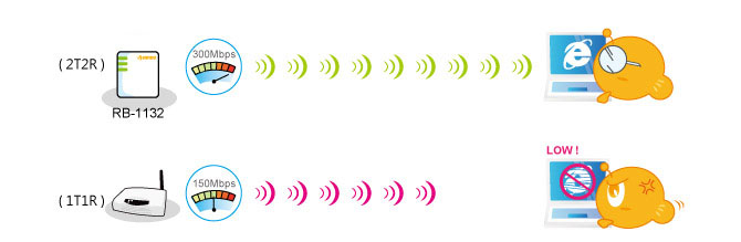 Wireless Range with Max. Speed of 300Mbps. |