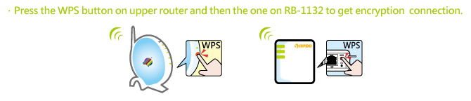 via pressing the WPS button or one click at setup program. |