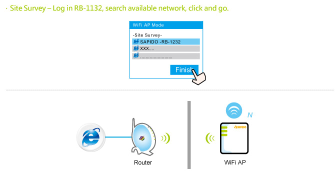 via Sapido Mobile Hotspot. No need cable or complicated WDS