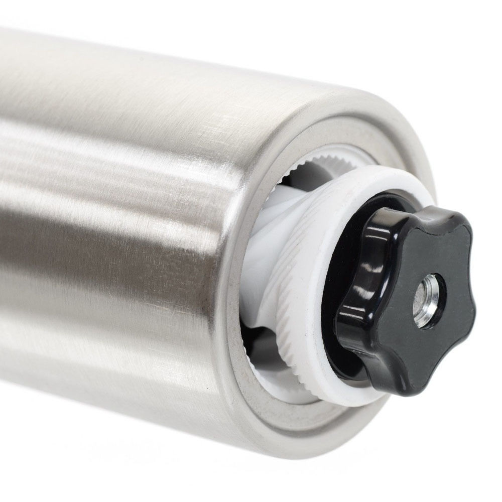 Beautiful stainless steel design built to withstand the demands of everyday use and travel, and produces less static than all-plastic bodied grinders. Also, you can calibrate the amount of ground through the transparent bottle. Secure and slim handheld design makes for easier grinding, ease of use and saves space.