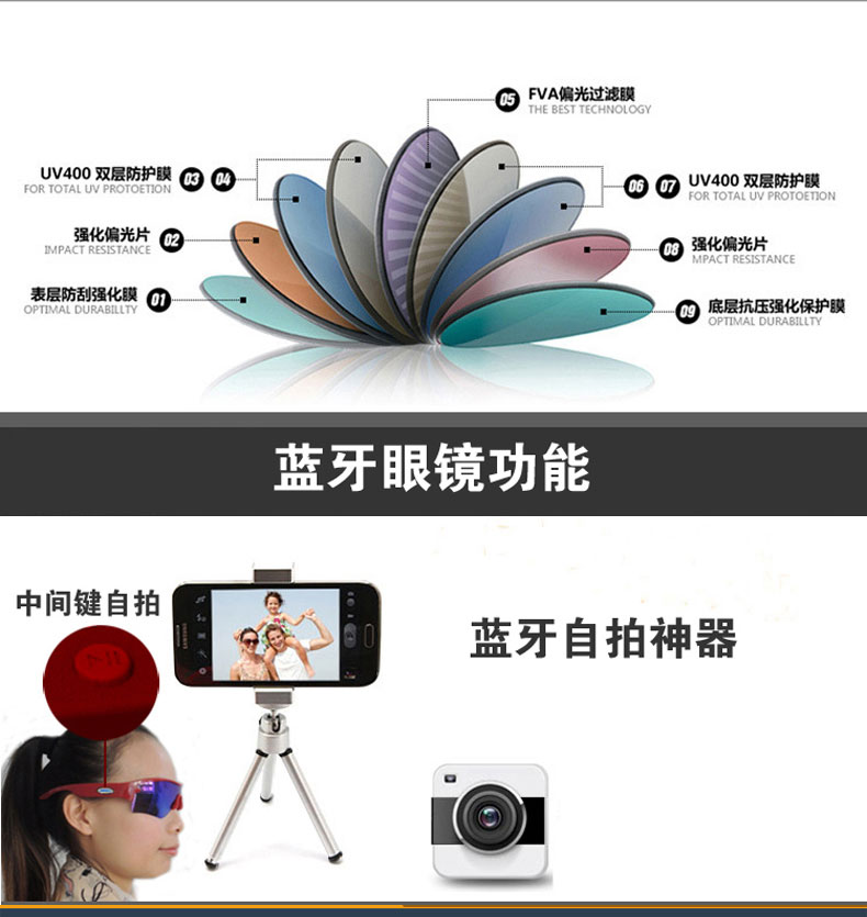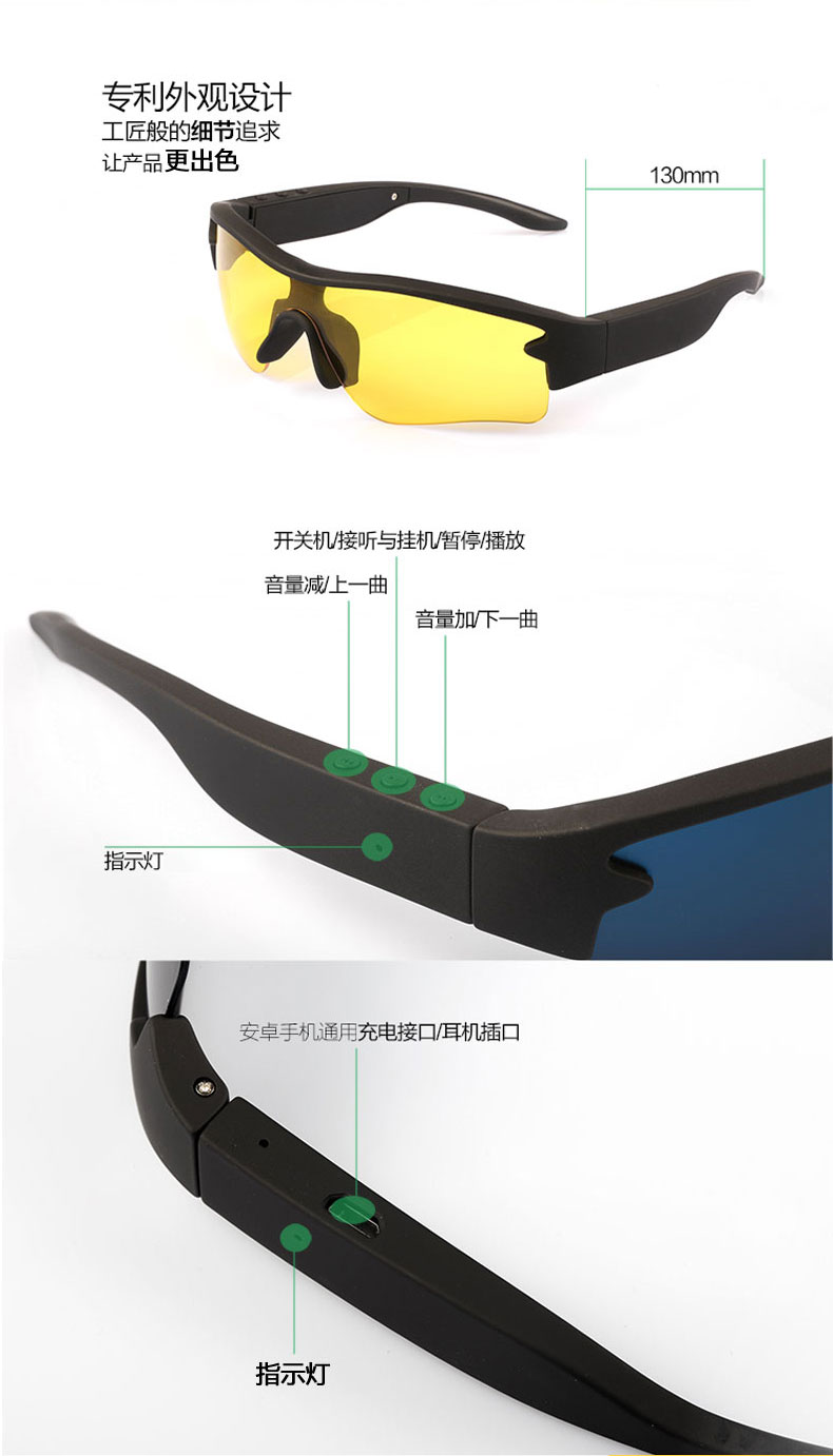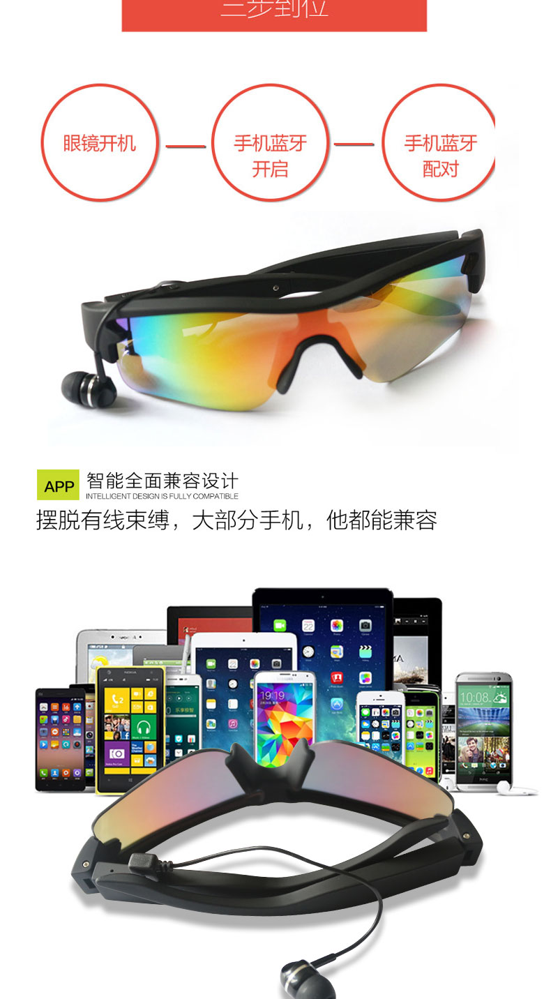 Universal Wireless Bluetooth 4.0 Polarized Sunglassess Music Headset Headphone Can Pair 2 Devices + Bluetooth Shutter + Voice Control / Notification