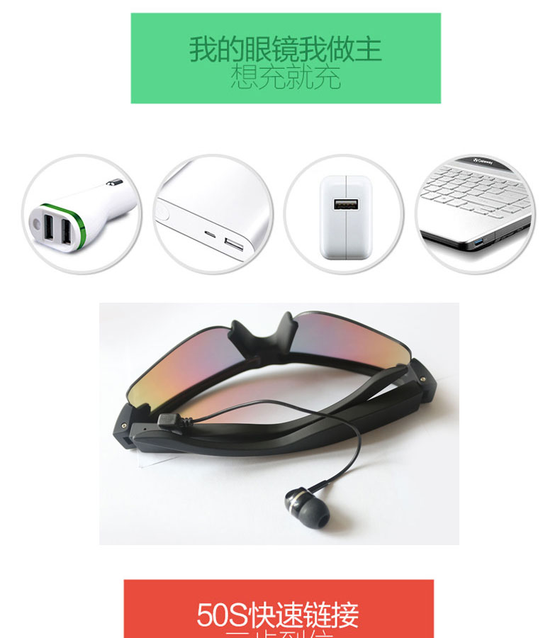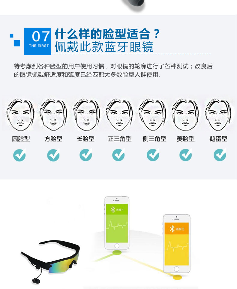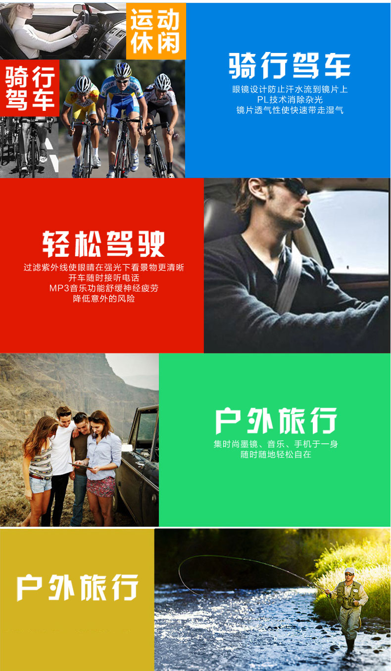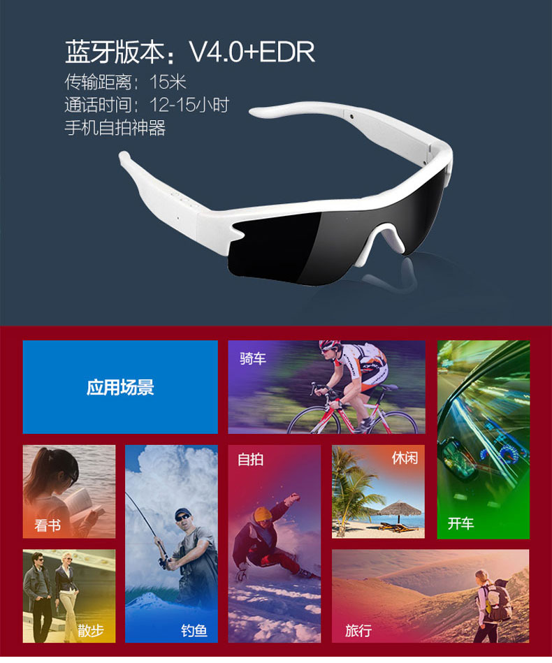 Universal Wireless Bluetooth 4.0 Polarized Sunglassess Music Headset Headphone Can Pair 2 Devices + Bluetooth Shutter + Voice Control / Notification