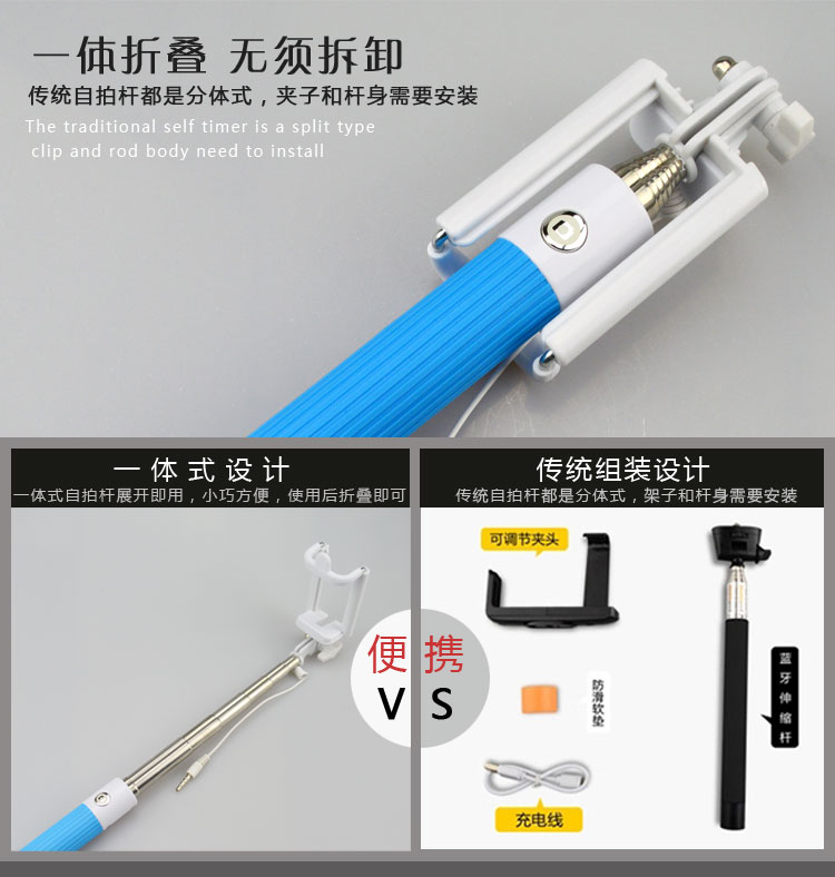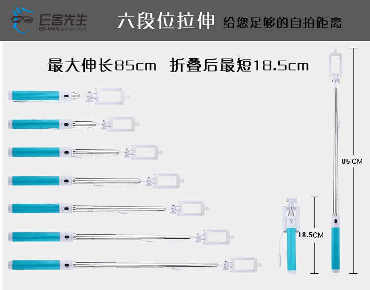 New Extra Long 85CM Wired Selfie Stick Monopod Foldable Colorful for iPhone Samsung